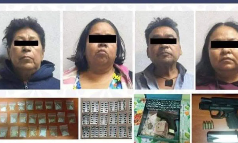 Con una orden de cateo otorgada por la autoridad judicial, el inmueble fue intervenido, logrando la detención de Armando N., Francisca N., Verónica N. y Maribel N.