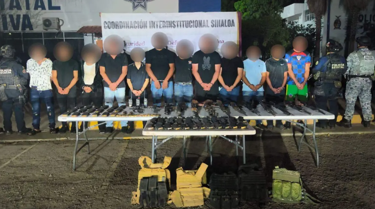 Elementos de la Secretaría de Seguridad Pública de Sinaloa detuvieron a 12 civiles armados en el municipio de El Rosario, entre ellos tres menores de edad, durante un operativo de seguridad.