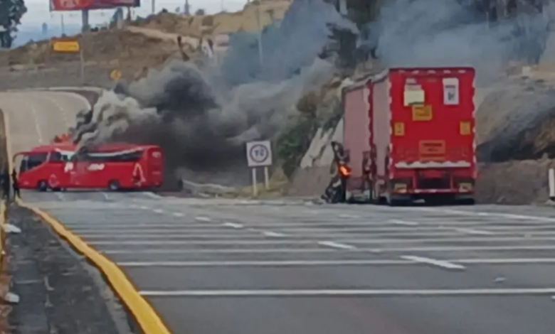 Incendian tráileres y autobús en la Autopista México-Puebla; confirman cierre total