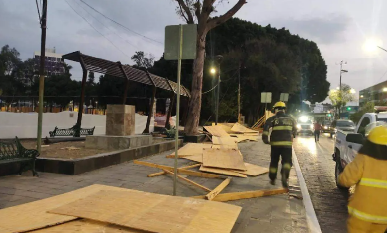 La Protección Civil del Estado de Puebla informó que, derivado de las fuertes ráfagas de viento, una estructura provisional instalada en el Paseo Bravo fue derribada.