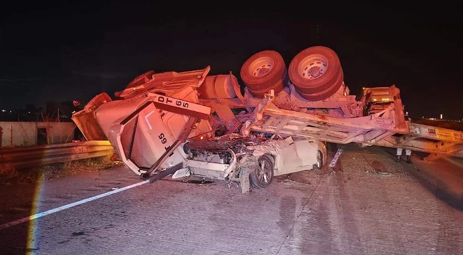 Un conductor perdió la vida luego de que un tráiler volcó y aplastó su vehículo sobre la autopista Arco Norte, a la altura del kilómetro 225, en el tramo con dirección a Puebla, dentro del municipio de San Martín Texmelucan.
