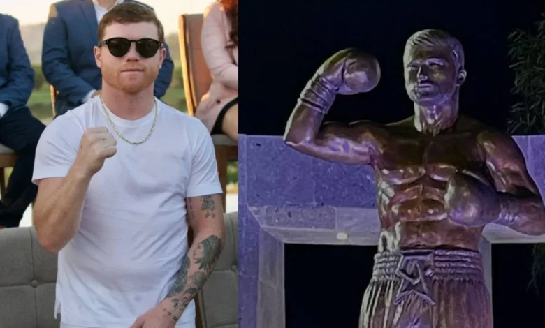 Santos Saúl “El Canelo” Álvarez ya tiene su estatua en su natal, Juanacatlán, Jalisco. Esto como parte de la celebración por el 124 aniversario de la fundación de dicha ciudad. Ayer alrededor de las 18:00 se develó la escultura de bronce del hijo predilecto de ese municipio.