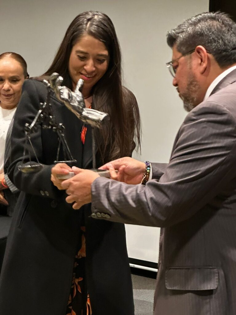 El Instituto Congresista de Ciencias Jurídicas distinguió a la Magistrada Indira Isabel García Pérez, del Tribunal de Disciplina Judicial del Poder Judicial de la Federación, por su amplia y reconocida trayectoria dentro del ámbito jurídico nacional. Durante el evento, recibió la escultura “La mano que sostiene la justicia”, una obra forjada por el artista hidalguense Onésimo Ávila, quien goza de prestigio internacional.
