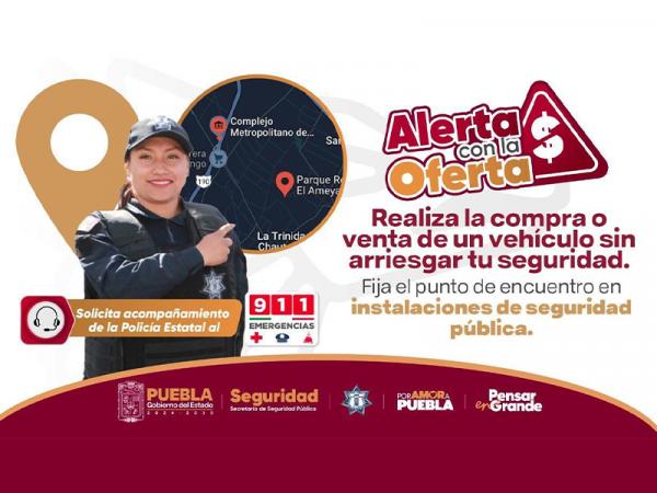 Como parte de las acciones preventivas que implementa el Gobierno de Puebla, la Secretaría de Seguridad Pública (SSP) pone a disposición de la población el servicio gratuito de acompañamiento policial para la compra segura de vehículos.