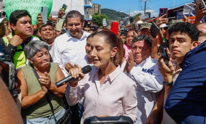Desde este punto, la mandataria escuchó de primera mano a las familias damnificadas, constató personalmente las condiciones en que se encuentran las viviendas, caminos y carreteras y refrendó el compromiso del Gobierno de México para brindar atención oportuna y apoyo integral a quienes más lo necesitan.