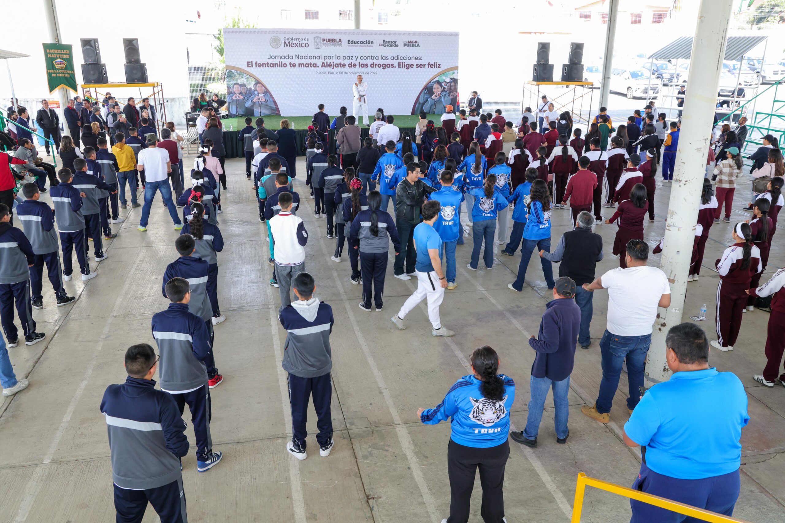 CIUDAD DE PUEBLA, Pue.- Con el objetivo de concientizar a las y los estudiantes de nivel secundaria, media superior y superior de todo el estado, el secretario de Educación Pública, Manuel Viveros Narciso encabezó las actividades de la tercera Jornada Nacional por la Paz y Contra las Adicciones, impulsada por la presidenta Claudia Sheinbaum en todo el país y por el gobernador, Alejandro Armenta.