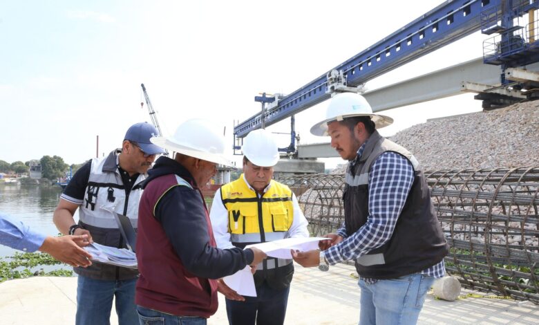 El secretario de Infraestructura, José Manuel Contreras de los Santos, supervisó las maniobras realizadas de día y de noche para colocar las primeras trabes entre San Baltazar Tetela y Los Ángeles Tetela. Las labores requieren precisión debido a que se desarrollan tanto en tierra como en la superficie del vaso de la laguna.