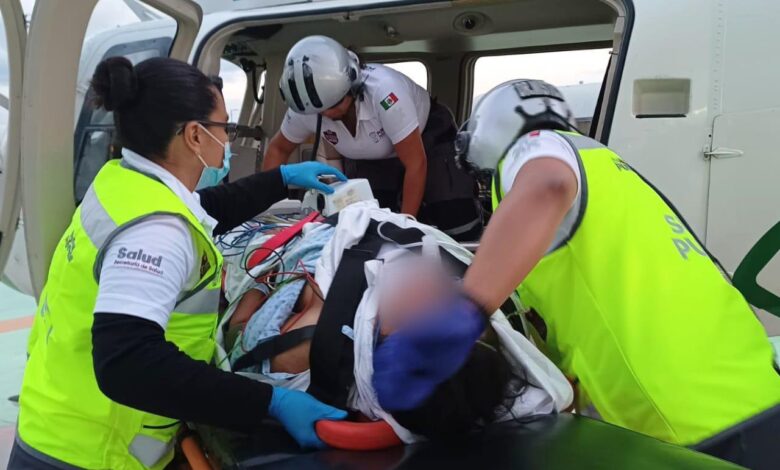 Con apoyo aéreo, SUMA garantiza atención oportuna a mujer con complicaciones postparto