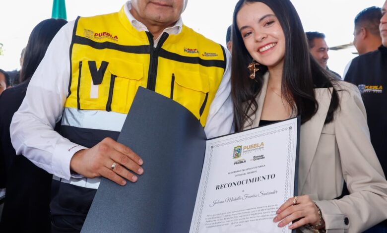 Durante la rueda de prensa, Alejandro Armenta entregó un reconocimiento a la bailarina poblana Michel Fuentes Santander, de 17 años, quien representará a Puebla y a México en el certamen internacional Prix de Lausanne 2026.