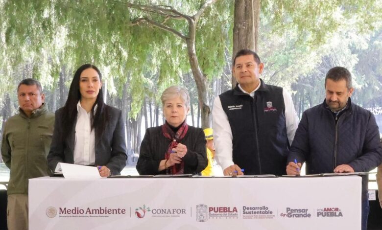 AMOZOC, Pue.- Por sus acciones de restauración, reforestación y protección de los ecosistemas, Puebla se consolida como un modelo nacional en iniciativas de cuidado ambiental, afirmó la secretaria de Medio Ambiente y Recursos Naturales, Alicia Bárcena, al respaldar las estrategias implementadas por el Gobierno del Estado en la zona de La Malinche.