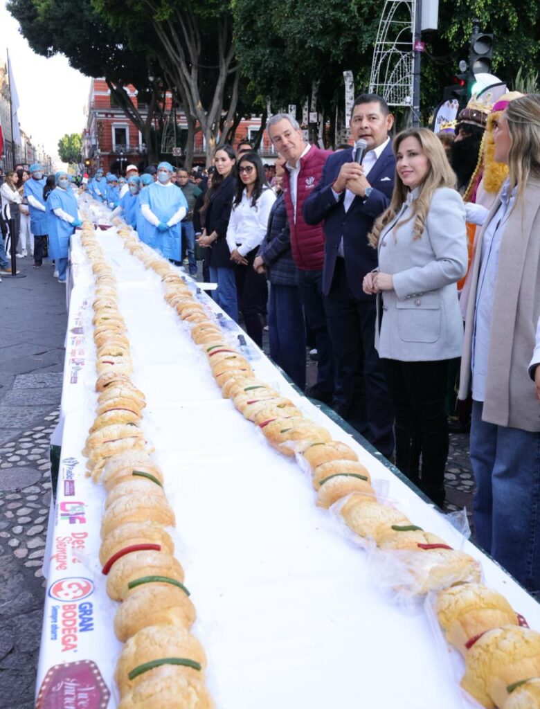 Ciudad de Puebla, Pue.– El Zócalo de la ciudad se llenó de alegría, tradición y unión familiar con la celebración de la Rosca de Reyes Monumental, que alcanzó una extensión de 6 kilómetros y obtuvo el Récord Guinness como la línea de pan más larga del mundo.