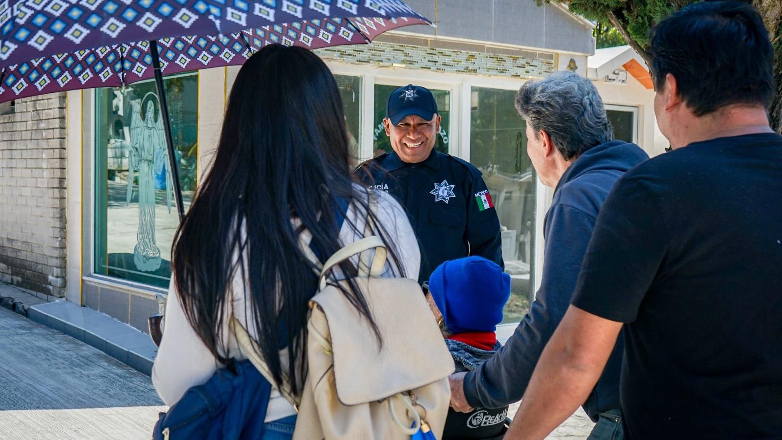 Las y los elementos realizan labores de vigilancia, recorridos pie-tierra y patrullajes preventivos, además de brindar orientación y apoyo en los accesos y alrededores de los camposantos.